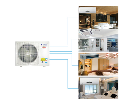 一臺(tái)室外機(jī)可搭配多臺(tái)室內(nèi)機(jī),形式豐富多樣,可搭載風(fēng)管式、天井式、壁掛式室內(nèi)機(jī)。