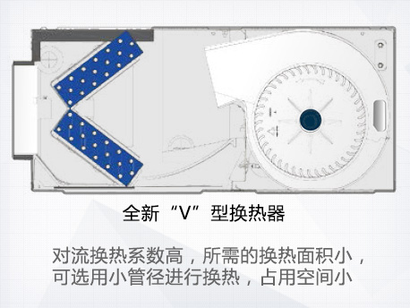 采用“V”型換熱器,開機初期,根據(jù)室內(nèi)溫度與設(shè)定溫度自動調(diào)節(jié)至高頻狀態(tài),縮短制冷或制熱時間,提升舒適度。