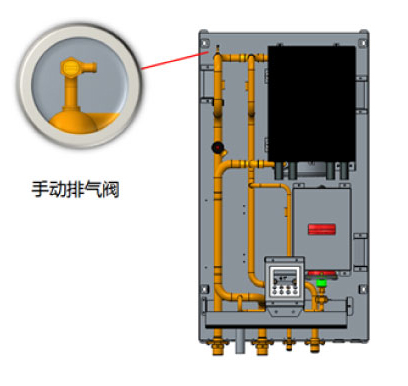 功能開啟時(shí),首先開啟水泵,升高水系統(tǒng)壓力,此時(shí)打開手動(dòng)排氣閥,水路中的空氣從手動(dòng)排氣閥排出。