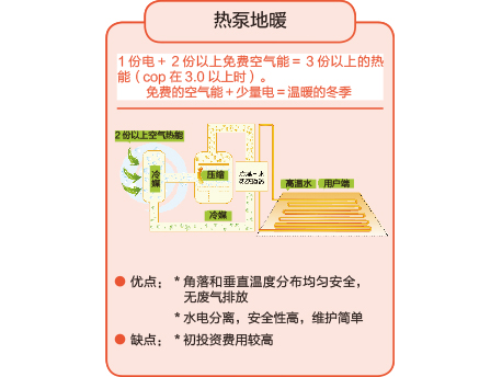 利用空氣源熱泵技術(shù),通過少量電能驅(qū)動,從空氣中取熱,同時配合可使用35℃低溫?zé)崴膳牡匕遢椛洳膳夹g(shù),消耗一份電能可獲得三份熱能,與傳統(tǒng)的燃煤、燃油、燃?xì)饣螂姴膳啾?,可?jié)省大量運行費用且清潔無污染。