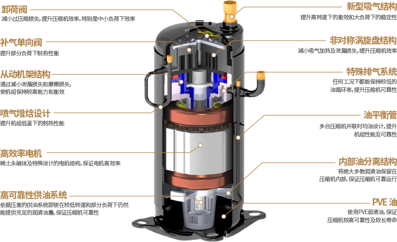 ·新一代噴氣增焓高壓腔渦旋壓縮機(jī),超高能效更可靠