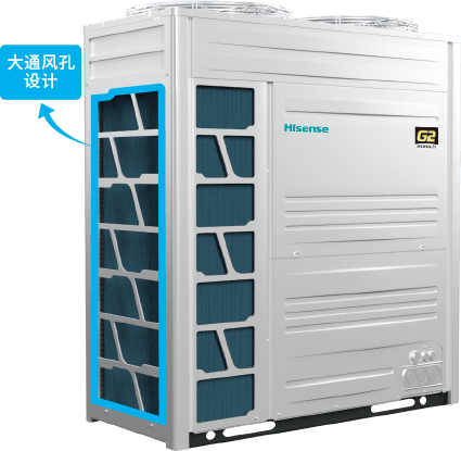 室外機(jī)側(cè)板上加大的通風(fēng)孔設(shè)計(jì),可以有效降低通風(fēng)阻力,提升通風(fēng)量,提升換熱器的換熱效率。