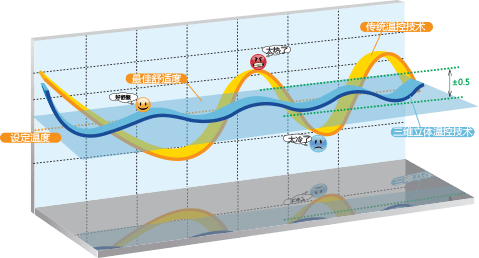 傳統(tǒng)多聯(lián)機(jī)依據(jù)室內(nèi)回風(fēng)溫度控制室內(nèi)溫度,Hi-MultiM2系列追加了有 線(xiàn)遙控器溫度傳感器和出風(fēng)溫度傳感器*,通過(guò)出風(fēng)溫度傳感器、回風(fēng)溫度傳感器和控制器溫度傳感器的感測(cè)溫度綜合測(cè)算室內(nèi)溫度,可以使溫度傳感器的溫度更接近室內(nèi)溫度,并通過(guò)2000級(jí)的高精度電子膨脹閥調(diào)節(jié)冷 媒流量,在滿(mǎn)足室內(nèi)溫控設(shè)定精度±0.5℃的同時(shí),同時(shí)將出風(fēng)溫度控制在優(yōu)異的范圍,更好的滿(mǎn)足人體舒適性。