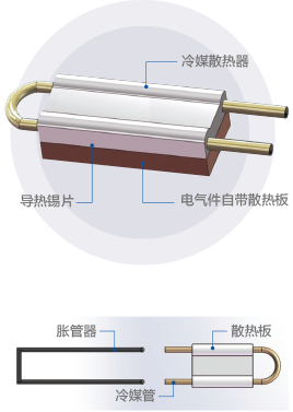 ● 冷媒散熱器與電氣件自帶的散熱板之間增設(shè)導(dǎo)熱墊片來(lái)提高傳熱效率,導(dǎo)熱系數(shù)高,顯著提升了整體散熱性能