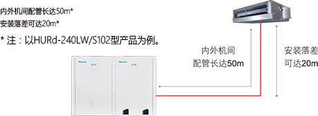 空調(diào)內(nèi)外機間長配管高落差設(shè)計,滿足現(xiàn)代建筑內(nèi)外裝修需求。