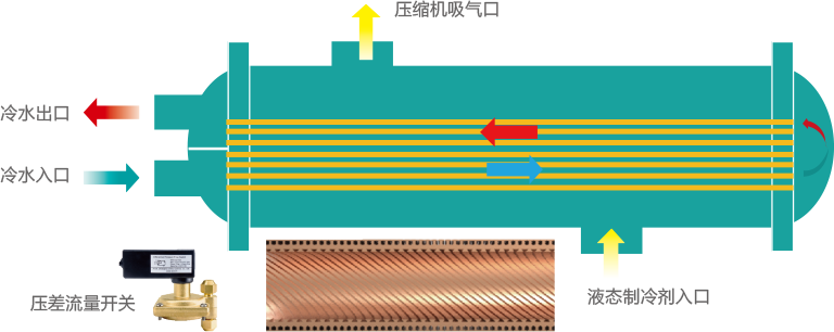 全新高效滿液式蒸發(fā)器,全面提高換熱效率