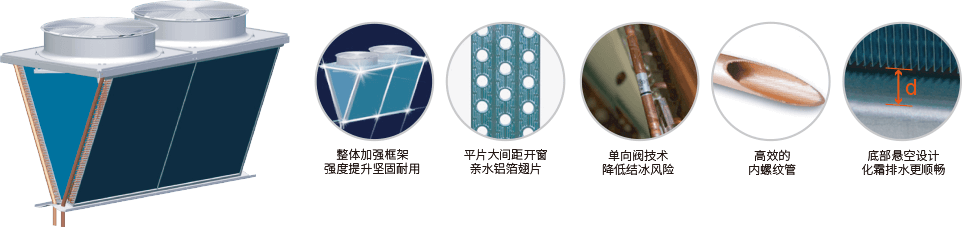 產(chǎn)品采用整體加強(qiáng)金屬框架+V型結(jié)構(gòu)換熱器+內(nèi)螺紋銅管+三重防結(jié)霜設(shè)計(開窗平片親水鋁箔+底部懸空+單向閥)的設(shè)計方案,結(jié)構(gòu)穩(wěn)定性更好,防腐蝕性更強(qiáng);充分利用換熱面積,有效提高換熱效率;不易積灰,壓損更小,排水更順暢,冬季不易結(jié)霜,可靠性更高。