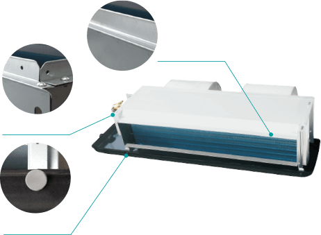 ●機身鈑金表面采用鍍鋅防腐蝕處理,結(jié)實美觀;一體式無縫接水盤,避免因排水不暢導致的冷凝水滲漏等問題,降低用戶使用風險。