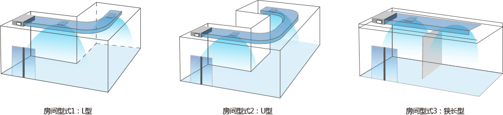●面對L型或U型等不規(guī)則房型,多點遠距離送風,使每個角落都能感受到舒適愜意的環(huán)境溫度。
