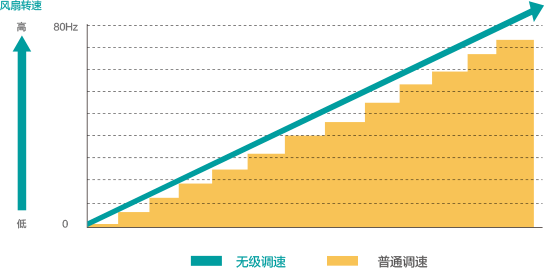 室外機(jī)風(fēng)扇電機(jī)采用直流變速電機(jī),電機(jī)效率提升40%,輸入功率大幅降低。同時,可根據(jù)環(huán)境溫度的變化進(jìn)行無級變速調(diào)節(jié),調(diào)節(jié)精度更高。