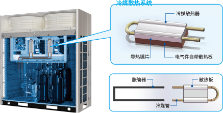 ◎冷媒散熱板采用高導(dǎo)熱性能的鋁合金和內(nèi)部機(jī)械脹管加工方法,實(shí)現(xiàn)銅管與散熱板之間的360°緊密貼合,散熱性能更優(yōu);