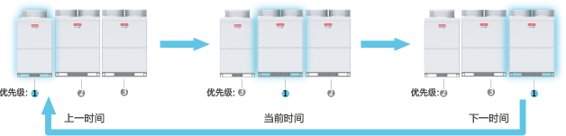 通過室外機模塊間輪換運轉(zhuǎn)技術(shù), 均衡了各室外機模塊的運行時間, 提高機組耐久性