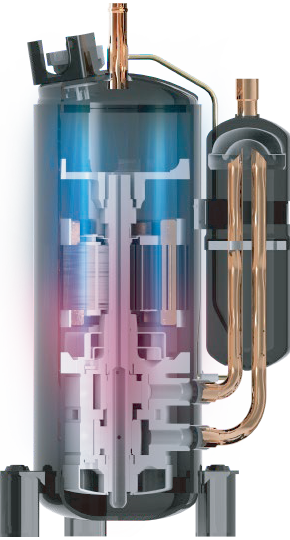 新一代高效壓縮機(jī)采用多支撐軸系穩(wěn)定結(jié)構(gòu)、小型化高轉(zhuǎn)矩密度電機(jī)技術(shù)、多重潤滑回油設(shè)計等,實現(xiàn)高效穩(wěn)定的運(yùn)行效果。噪音優(yōu)化設(shè)計,在保證機(jī)組性能的同時降低噪音,實現(xiàn)低噪運(yùn)轉(zhuǎn)。