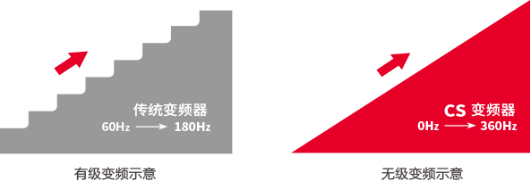 日立直流變頻壓縮機(jī)的運(yùn)轉(zhuǎn)速度可以根據(jù)系統(tǒng)容量的變化進(jìn)行連續(xù)、自由調(diào)節(jié),精度更高,實現(xiàn)了無級變頻,與自適應(yīng)控制技術(shù)相結(jié)合,根據(jù)實際空調(diào)負(fù)荷自動調(diào)節(jié)能力輸出,保證達(dá)到更平滑的變化曲線來滿足更高需求的舒適度。