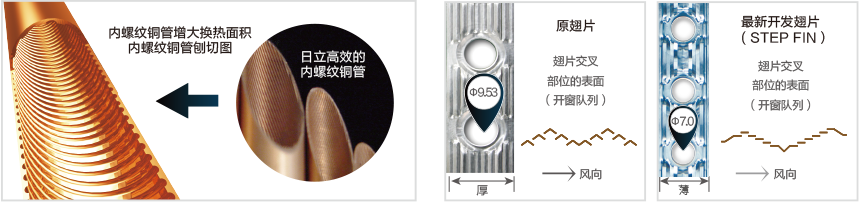 波紋型鋁翅片,親水涂層,減緩結霜狀況,快速排除化霜水,制熱性能更優(yōu)異