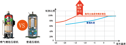 -15℃環(huán)境溫度下壓縮機(jī)制熱能力無衰減,整機(jī)制熱能力相比普通機(jī)型提升32%以上。