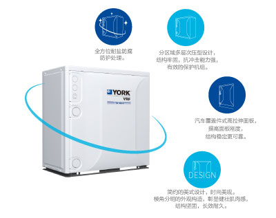 精細(xì)化外觀結(jié)構(gòu)設(shè)計,盡顯美式高品質(zhì)。 強效高能效,IPLV(C)值最高可達(dá)10.10。 約克品牌高效能渦旋壓縮機,進(jìn)口品質(zhì),動力強勁可靠。 5~50℃寬廣運行溫度范圍,冷熱源穩(wěn)定,機組不受氣候影響。 機組放置靈活,有效提高空間利用率。