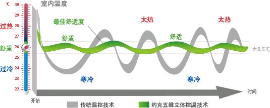 約克地暖中央空調(diào)特有“五維立體控溫系統(tǒng)”能根據(jù)出風溫度傳感器、室內(nèi)機回風口溫度傳感器、室內(nèi)機換熱器的兩個換熱盤管溫度傳感器和線控器特有的溫度傳感器,五個傳感器共同檢測,溫度精準測控,從而實現(xiàn)溫度更小波動,家里不再忽冷忽熱,讓您盡享溫柔的清爽和貼心的溫暖。