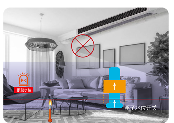 室內(nèi)機內(nèi)置浮子開關(guān),時刻監(jiān)控接水盤排水工作。同時可選配700mm揚程排水泵,可加速冷凝水排出速度,有效解決排水不暢問題,無后顧之憂。