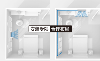 上下出風(fēng)明裝室內(nèi)機(jī)可將部分機(jī)身嵌入墻體安裝,半隱藏式安裝 在保證舒適氣流的同時(shí),可節(jié)省安裝空間。