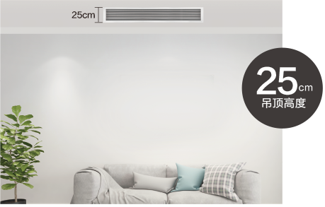 薄型機(jī)身,僅需25cm吊頂即可局部安裝,不影響層高視野,不占用地面墻面位置,釋放一平米使用空間。