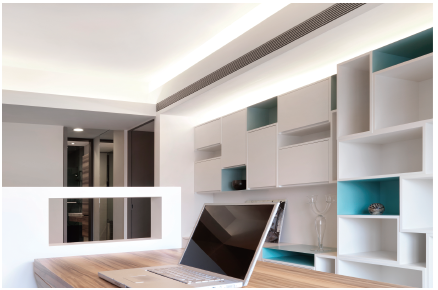書房?jī)?nèi)可充分利用書櫥上面的吊頂或進(jìn)門處上方的局部吊頂,將內(nèi)機(jī)充分隱藏,滿足整面書櫥的美麗愿望。