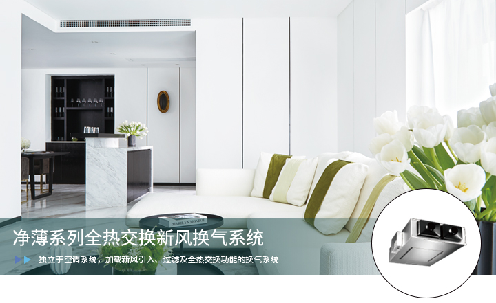 獨立于空調(diào)系統(tǒng),具有新風引入、過濾及全熱交換功能的換氣系統(tǒng),可滿足全屋高品質(zhì)潔凈新風需求,解決開窗通風帶來的污染及噪音等問題。