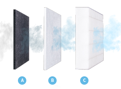 B、粗效過濾網(wǎng),捕捉大顆粒、灰塵、懸浮物、PM2.5。