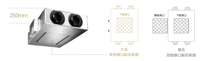 高度250mm,小戶型.低矮戶型也可輕松安裝。下部集成式檢修口,占用更小吊頂空間。