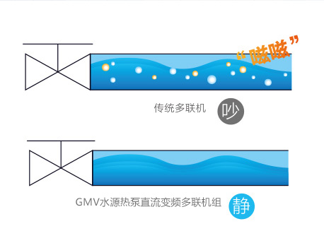 | 精準(zhǔn)負(fù)荷智能分配技術(shù) 空調(diào)在40%~75%負(fù)荷運(yùn)行時(shí),耗電量低,GMV5能智能分配各模塊輸出能力,運(yùn)行負(fù)荷超過(guò)75%時(shí),自動(dòng)增加一臺(tái)模塊運(yùn)行;負(fù)荷低于40%時(shí)自動(dòng)關(guān)閉一臺(tái)模塊,有效延長(zhǎng)機(jī)組壽命,時(shí)刻保持低耗電運(yùn)行。 | 先進(jìn)的過(guò)冷度控制技術(shù) 傳統(tǒng)機(jī)組在冷媒流量調(diào)節(jié)時(shí)會(huì)發(fā)出類(lèi)似“茲茲”的液流噪音,GMV水源熱泵直流變頻多聯(lián)機(jī)組采用過(guò)冷度控制技術(shù),確保冷媒以純液態(tài)形式進(jìn)入節(jié)流,有效解決內(nèi)機(jī)液流聲問(wèn)題,噪音更低。 |