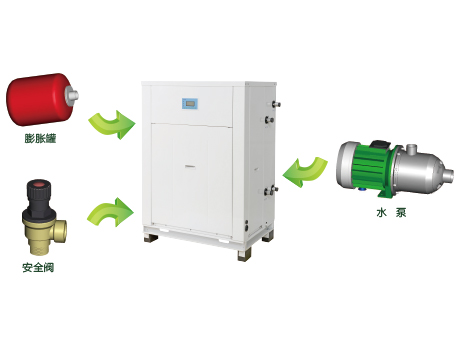 | 多重保護 具有高壓保護、低壓保護、壓縮機過載保護、排氣高溫保護、水流故障保護、感溫包故障保護等二十多項保護措施,有效避免故障隱患,確保機組安全運行。 | 自帶膨脹罐、水泵 自帶水泵、膨脹罐和水路安全閥,無需用戶二次采購,降低成本同時保證質(zhì)量,機組安裝更快捷方便。 |