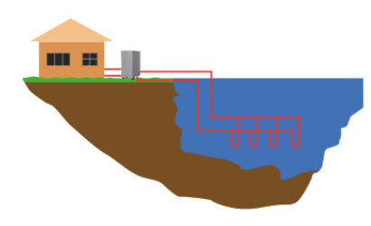 將換熱管路安裝與建筑物附近的湖水、池塘等地表水源中,通過(guò)與地表水進(jìn)行熱量交換為空調(diào)系統(tǒng)提供冷熱源。