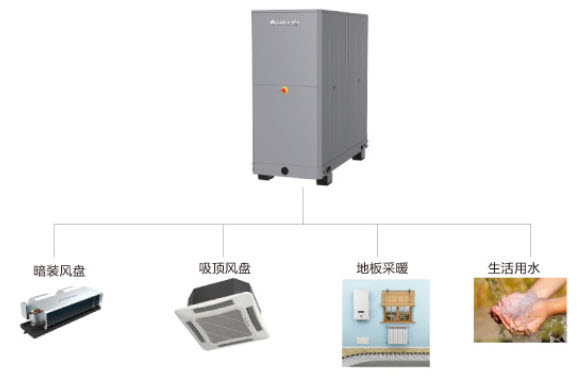 由于地球淺層地溫?zé)嵩匆荒晁募鞠鄬?duì)穩(wěn)定,不受大氣溫度影響,相對(duì)穩(wěn)定,在冬季,機(jī)組將淺層土壤、地表水能量中的熱量提取出來(lái),制取熱水,供建筑物空調(diào)采暖及其他用途;在夏季,機(jī)組將室內(nèi)的熱量提取出來(lái),釋放到淺層土壤、地表水中,達(dá)到夏季空調(diào)制冷的目的。