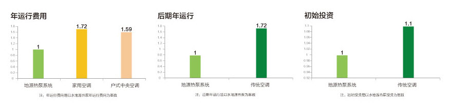 采用地?zé)幔ㄋ┠苋〈鷤鹘y(tǒng)的冷卻塔和鍋爐作為空調(diào)系統(tǒng)的冷熱源,屬于免費(fèi)的可再生資源,比傳統(tǒng)空調(diào)運(yùn)行效率高40~60%,且年運(yùn)行費(fèi)用大大降低。