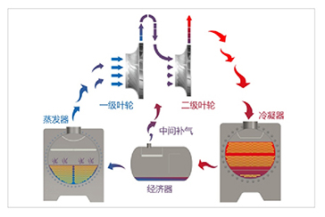 雙級(jí)壓縮補(bǔ)氣技術(shù)相比單級(jí)壓縮具有以下優(yōu)勢(shì):