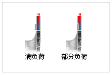 ·葉輪后設(shè)置可變截面擴(kuò)壓器,在部分負(fù)荷時(shí)提高氣流流速,改善氣流的不穩(wěn)定性,減少氣體回流,有效改善機(jī)組喘振點(diǎn),擴(kuò)展機(jī)組運(yùn)行范圍,降低機(jī)組噪音,減小滿負(fù)荷與部分負(fù)荷時(shí)機(jī)組振動(dòng)。