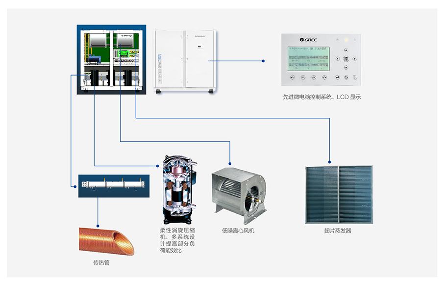 機(jī)組各制冷部件結(jié)合系統(tǒng)仿真、流道模擬仿真等設(shè)計(jì)和精心的匹配,保證制冷系統(tǒng)的整體性能。